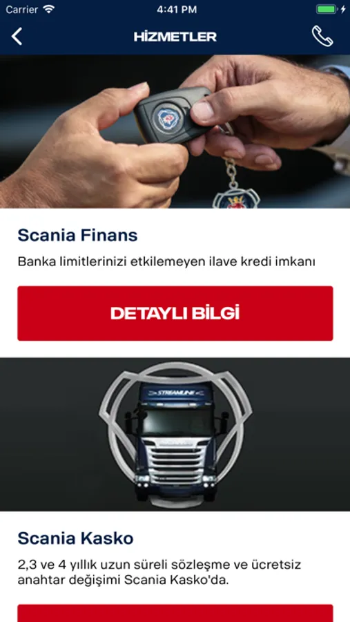 Scania hizmetlerine kolayca ulaşabileceğiniz bu uygulama sadece Scania sahiplerine değil; firma yetkililerine, sürücülere ve tüm Scania severlere ayrıcalıklı bir dünyanın kapılarını açıyor. Scania sahiplerinin hayatlarını kolaylaştıracak birçok fonksiyon sunan Scania ile servis randevusu talep edebilir; bakım anlaşması, yeni ve ikinci el araç hakkında bilgi alabilirsiniz. Ayrıca size özel fırsatlardan da anında haberdar olabilirsiniz.