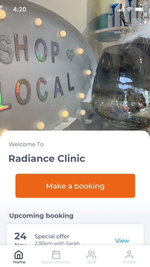 The Radiance Clinic app makes booking your appointments and managing your loyalty points even easier. You're just a few taps away from feeling good and looking great!