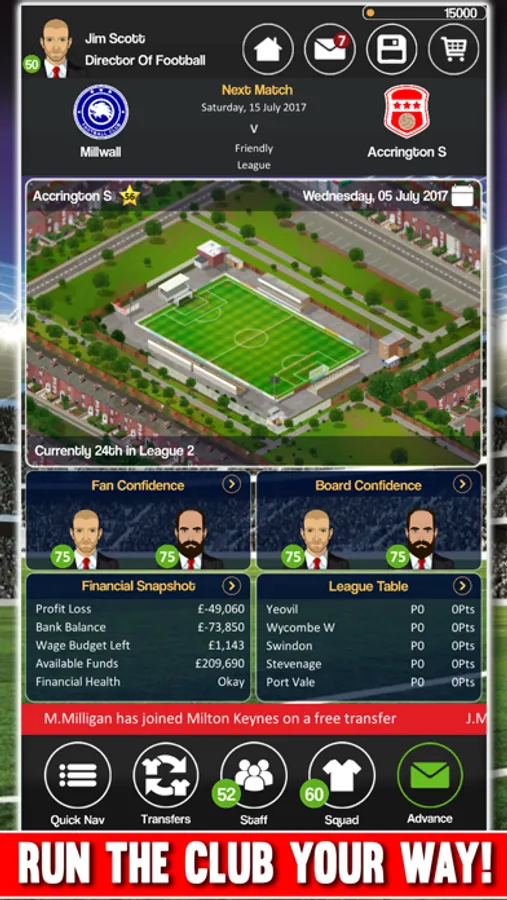 Just like real life, your decisions affect the attitude of the board, team morale and even the fans. How you engage with press and media, ticket prices, the quality of your squad and the potential of your Academy prospects all have a bearing.