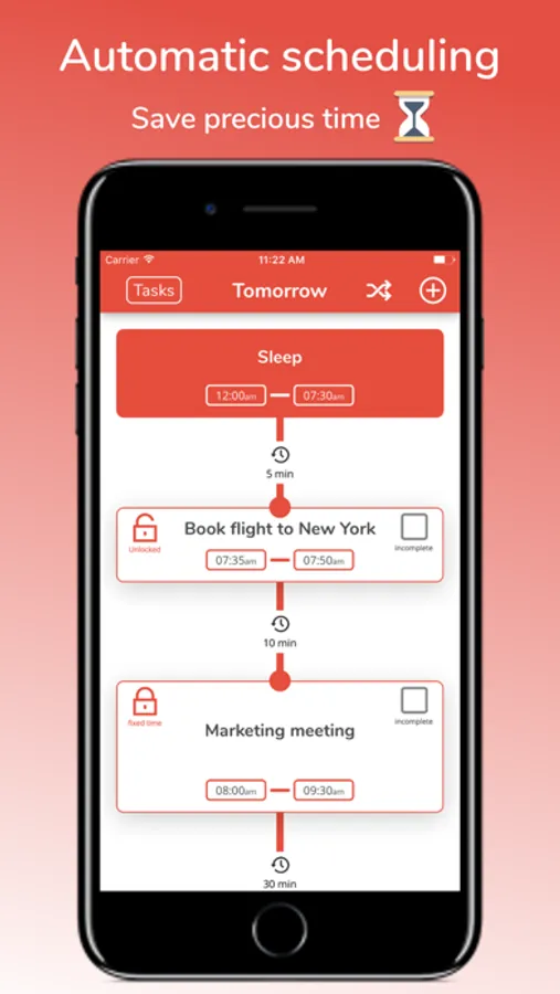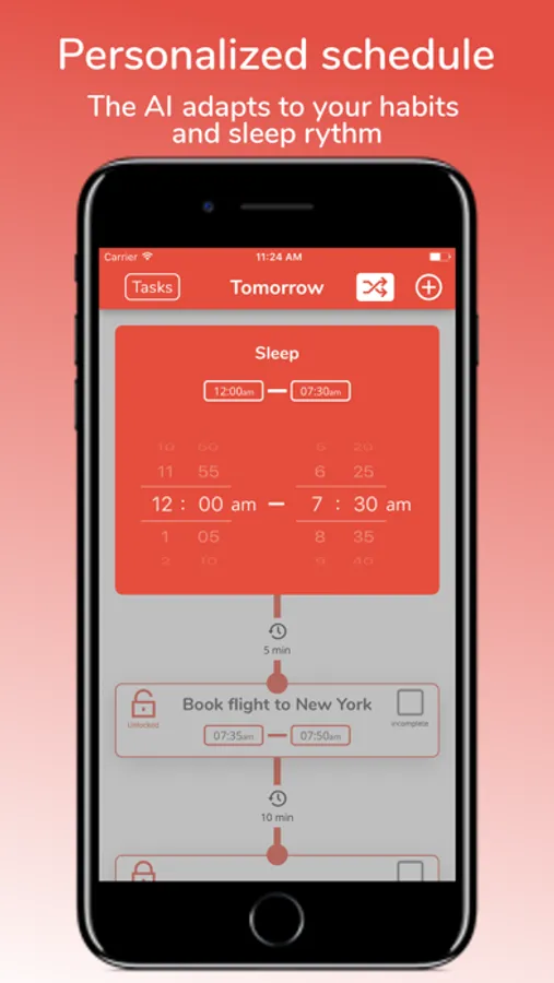 First of all the app chooses the most important tasks which should get done today. By learning your habits and most productive times the AI selects the optimal time for every task. Furthermore, it plans perfectly timed breaks to keep your motivation and concentration up. In this process, it takes also your appointments from your calendar app into account, so you won't experience any overlaps.