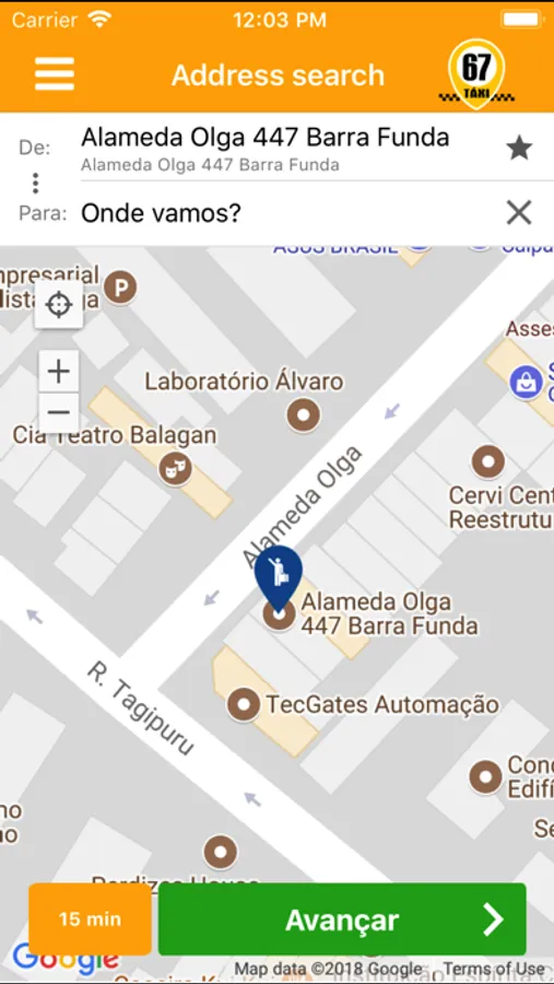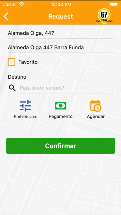67 Táxi é uma aplicação simples e fácil de usar que permite ao usuário solicitar e agendar corridas de táxi.