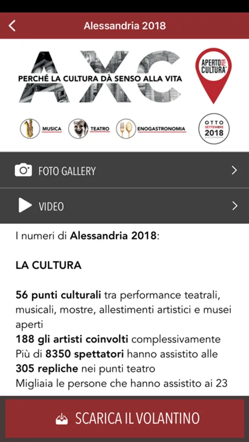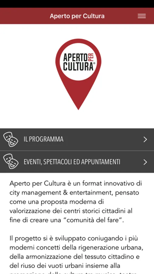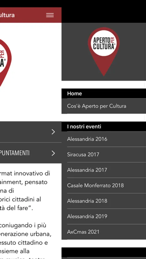 Mobile APP di "Aperto per Cultura", un format innovativo di city management & entertainment, pensato come una proposta moderna di valorizzazione dei centri storici cittadini.