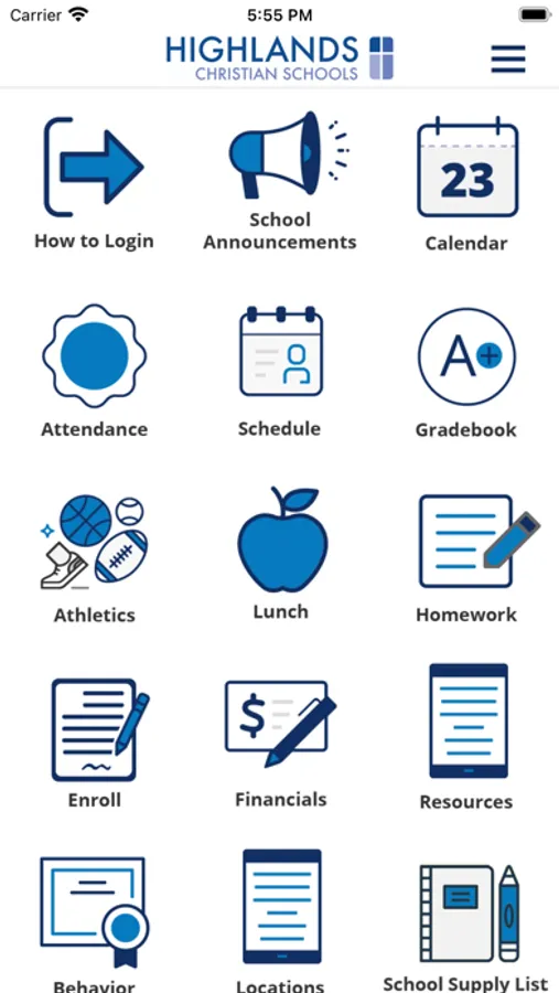 Highlands Christian Schools parent app. This app allows parents to have access to all school information; grades, attendance, email, schedules, report cards, school information.