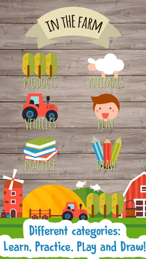 This is a all-in-one farm app for kids by Androbaby! They will learn farm animals, products and vehicles and practice farm items with various kid games.