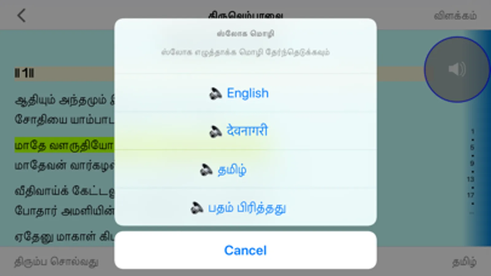 * The font size of sloka script and text can be easily changed by User and is independent of Device Setting. The range of font sizes can accommodate Users with impaired eyesight.