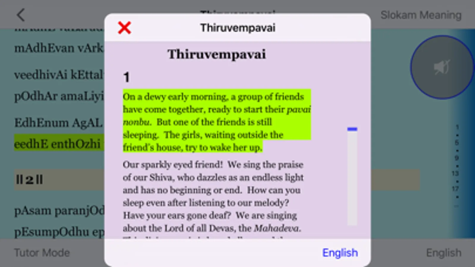 Our sloka audio is designed to help the User in correct diction and pronunciation. The tune, with no instruments, makes the sloka recitation easier.