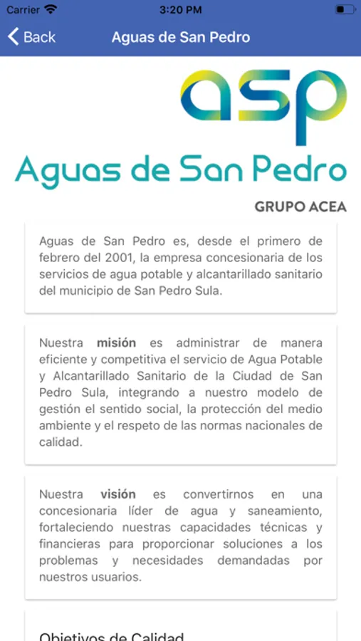 ASP Móvil es una aplicación gratuita de consulta de los servicios de Agua Potable y Alcantarillado Sanitario de la ciudad de San Pedro Sula, la cual fue diseñada para facilitar las gestiones de los clientes de la concesionaria Aguas de San Pedro.