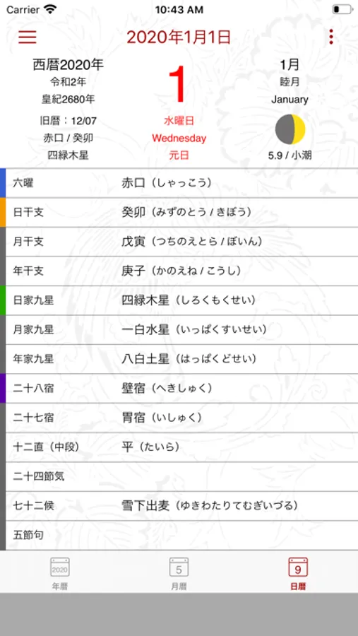 ※月干支、年干支は設定により暦月・節月を切り替えることができます。