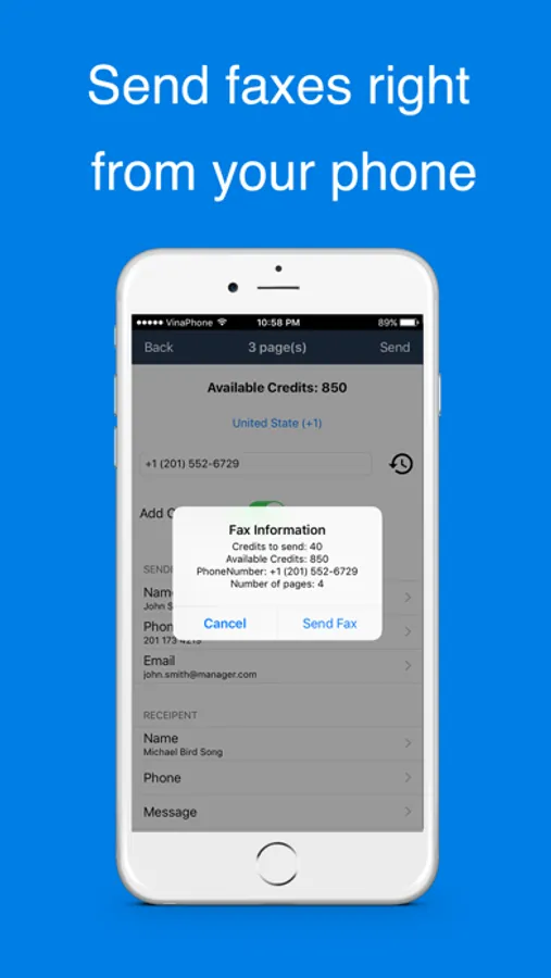 Easy Fax turns your phone into a powerful fax machine for documents, photos and receipts. With Easy Fax, you can fax anywhere. Get notifications and emails about your faxes.