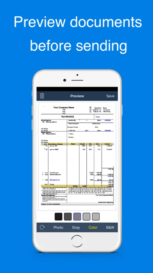 - Fax images from gallery or using phone's camera to scan.