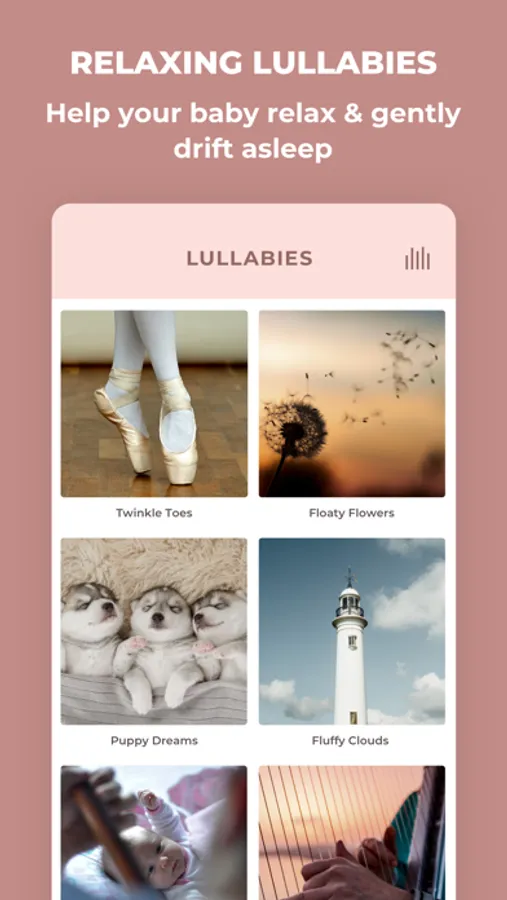 • 6 calming categories (Infants, Newborn, Toddlers, Lullabies, Parents)