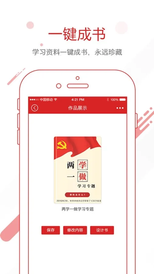 4. 一键成书:所有上传内容均可以根据不同主题“一键成书”,可一本印刷,方便留存和向上级汇报。