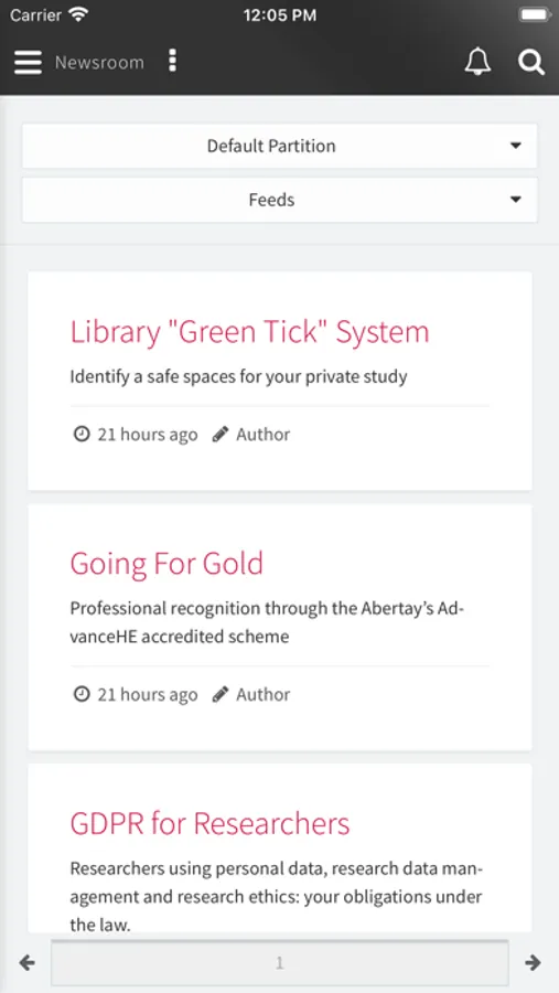 • Newsfeeds and announcements – latest news on your courses and from Abertay University