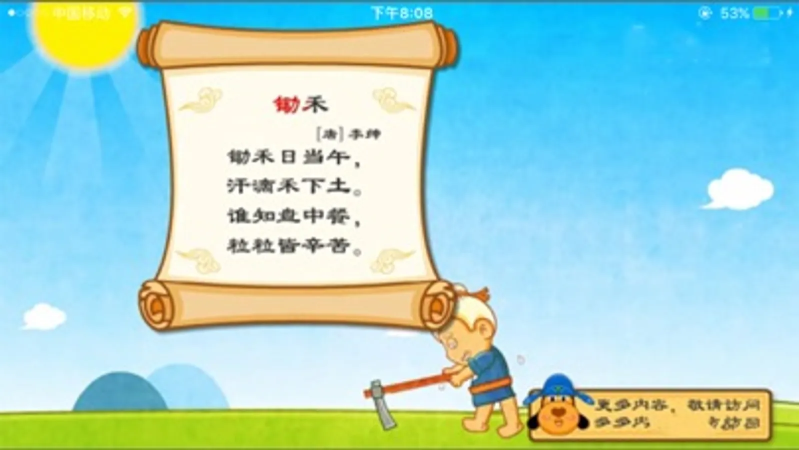 每日必看的唐诗动画,精选最耳熟能详的唐诗,配上专业美工设计的动画,让宝宝在感受快乐的同时,提升文学素养。