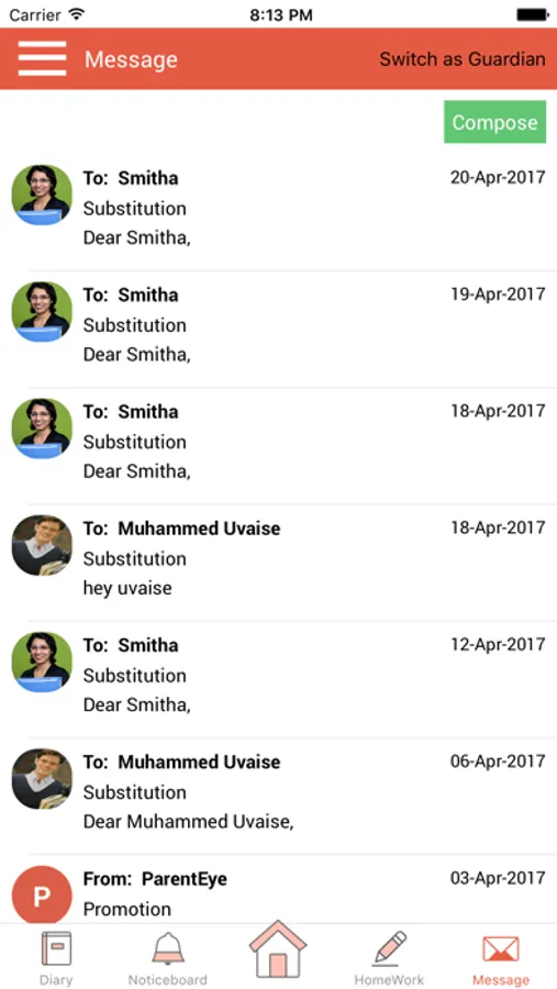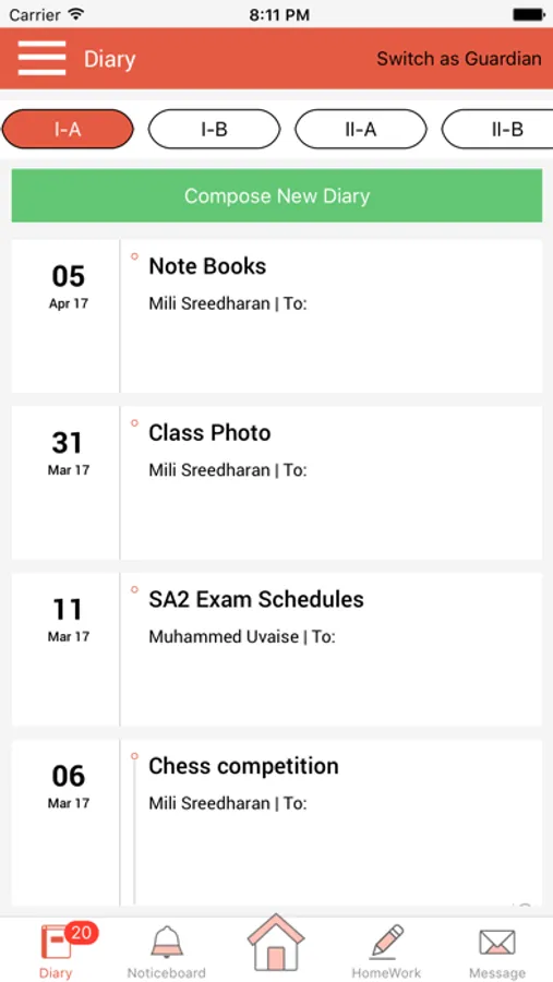 Excel Public School Mobile App’s diary open up a two way communication channel to reduce the communication gap between parent and teacher