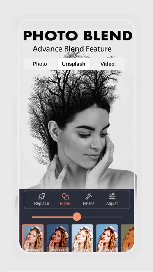 The cool new photo editor also allows you to blend two images together to create a double exposure effect.