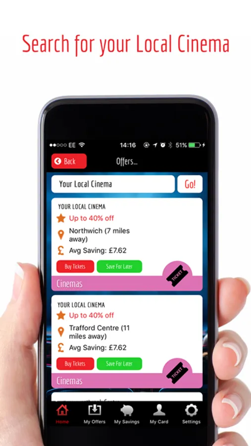 The app that gives you access to up to 40% off at all major cinema chains in the UK. Adult & Child Tickets 7 days a week!