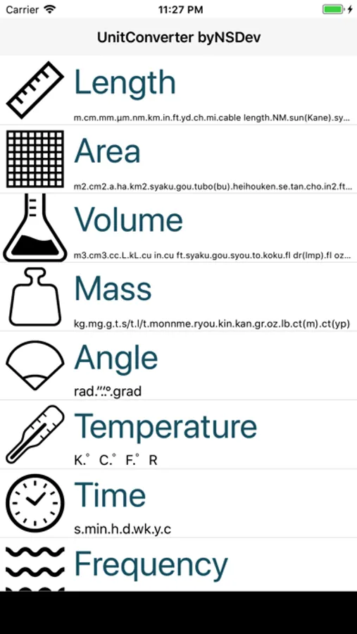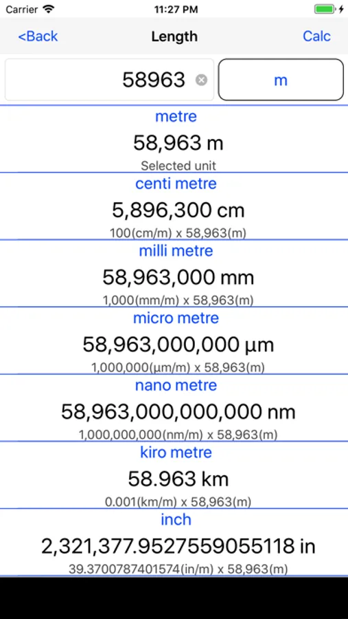 When you select a unit of value that you enter, you create a table to calculate all the other units. It also displays the conversion rate.