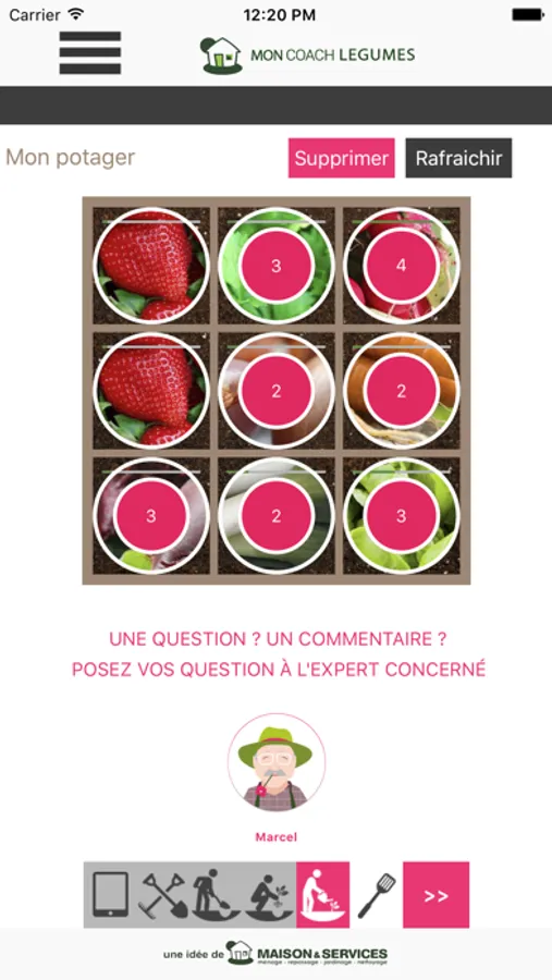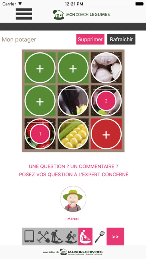 L’application iOs propose de créer son potager virtuel en quelques clics puis de réaliser concrètement son potager en suivant les conseils étape par étape, de la création du potager jusqu’à la cuisine des légumes.