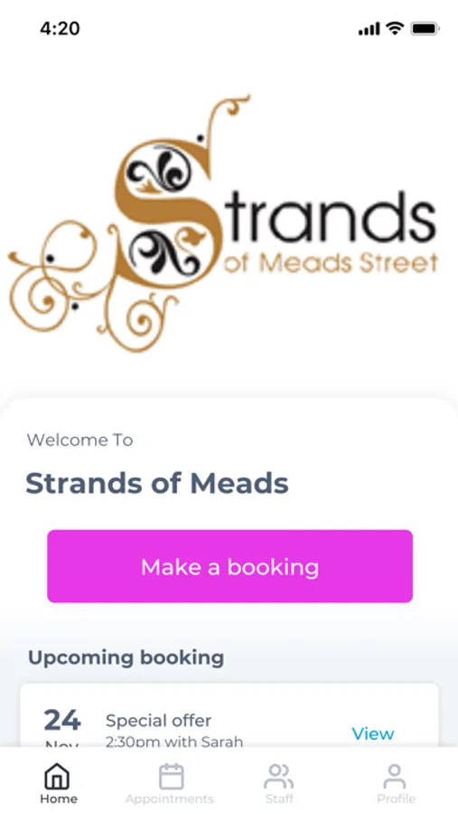 The Strands of Meads app makes booking your appointments and managing your loyalty points even easier. You're just a few taps away from feeling good and looking great!
