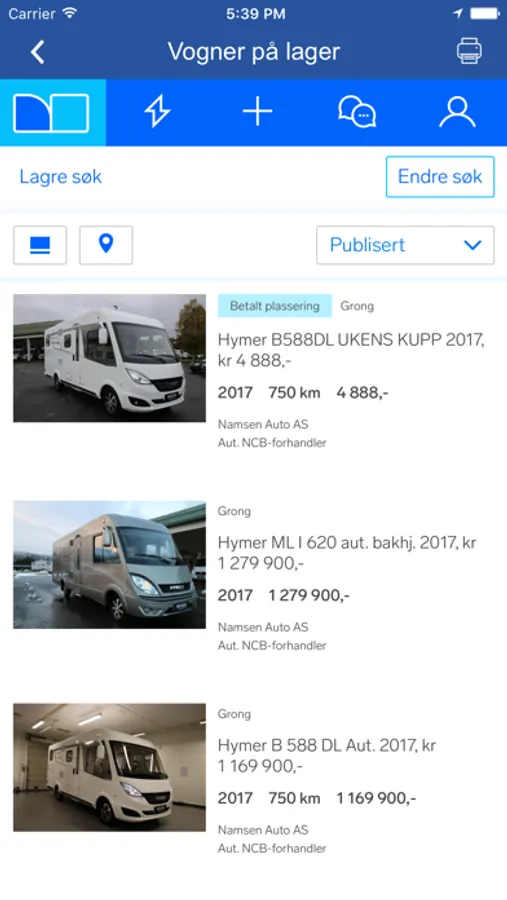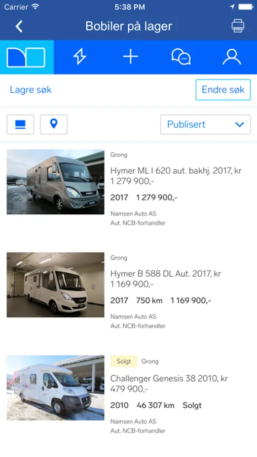 Namsen Auto AS er i dag blitt et anerkjent og solid selskap, hvor mye av vår fokus er konsentrert rundt god service, gode medarbeidere, bred erfaring og langvarige kundeforhold. Vi holder til på Grong Næringspark i Nord-Trøndelag. Vår portefølje består av både biler og bobiler, nye og brukte. Vi har til enhver tid inne over 80 kjøretøy, og hos oss finner du biler og bobiler i alle prisklasser. Vi prøver til enhver tid å opprettholde et variert utvalg. I tillegg kan vi nevne at vi har en meget bra tilbehørsbutikk for bobil og caravan i samarbeid med MaxFritid.