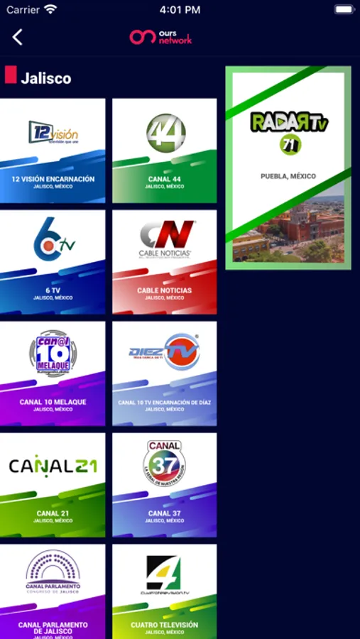 Ours Network, es la primer plataforma de transmisión de televisión en vivo. Con más de 180 canales de TV Regional de poblaciones de México, América Latina y el mundo. Programación 100% local que promueve las costumbres, tradiciones y cultura de cada región.