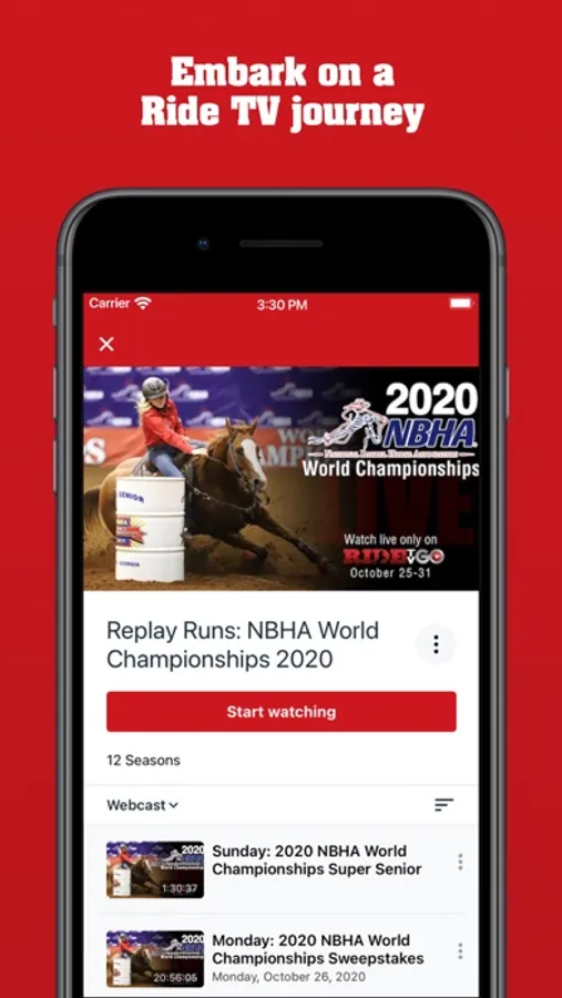 Embark on a Ride TV journey and discover the world of horses like never before! From mini ponies to training with top pros, Ride TV brings the ultimate equine education, entertainment and event coverage content to one platform. Now featuring video from Horse&Rider OnDemand and BarrelRacing.com!