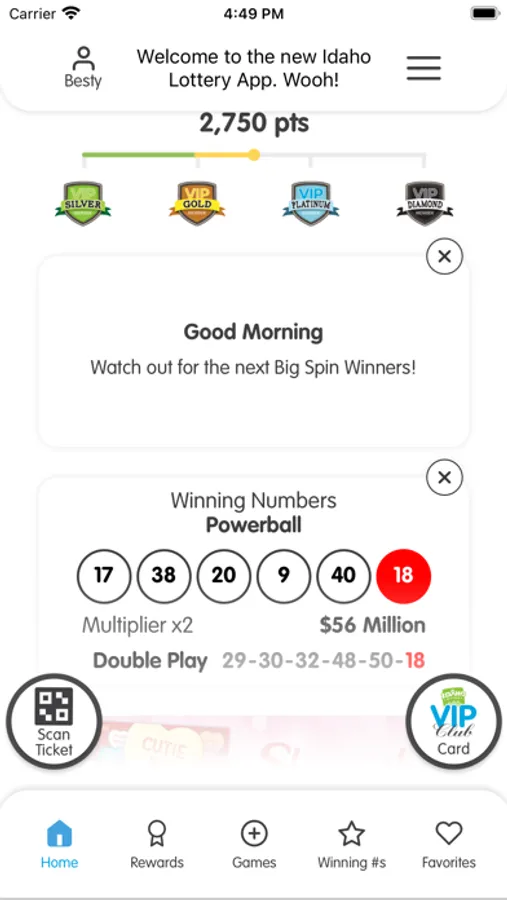 Everything Idaho Lottery is now available at your fingertips with the official Idaho Lottery app. It's more convenient than ever to check your tickets, get winning numbers and jackpot amounts, see prizes remaining on Scratch Games, access your VIP Club card and enter sweepstakes or 2nd chance drawings. Plus, find your nearest Idaho Lottery retailer, anytime, anywhere.