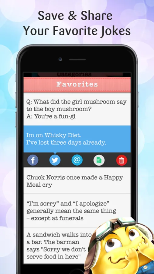 - Store jokes in your favorites list
