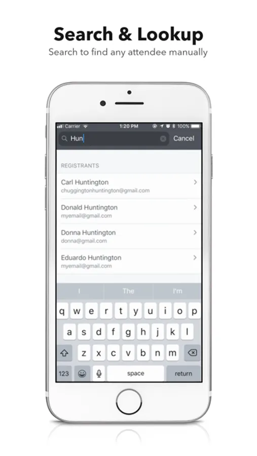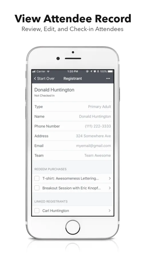 • QR scanning: Scan an attendee’s confirmation page or phone to look up their record and checkin.