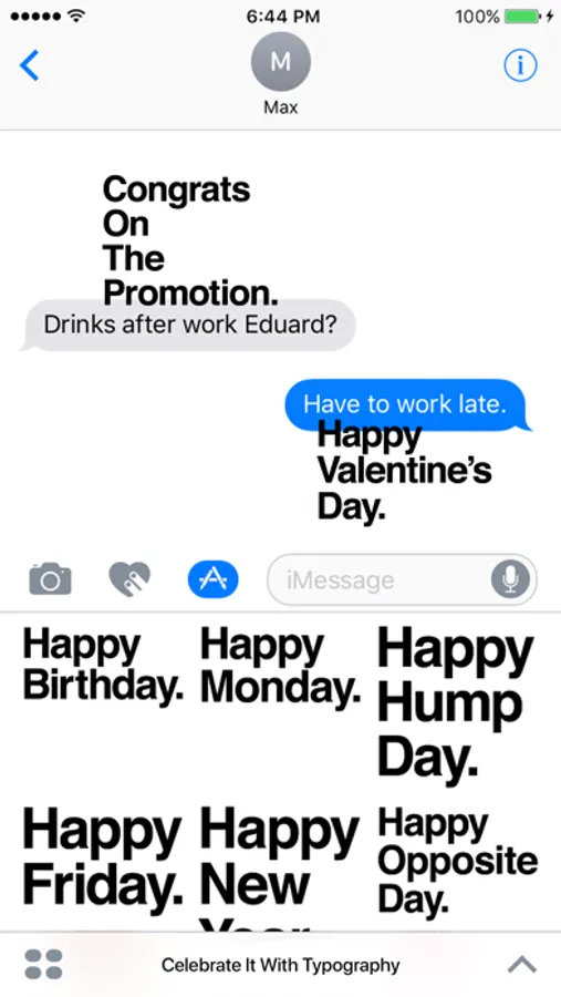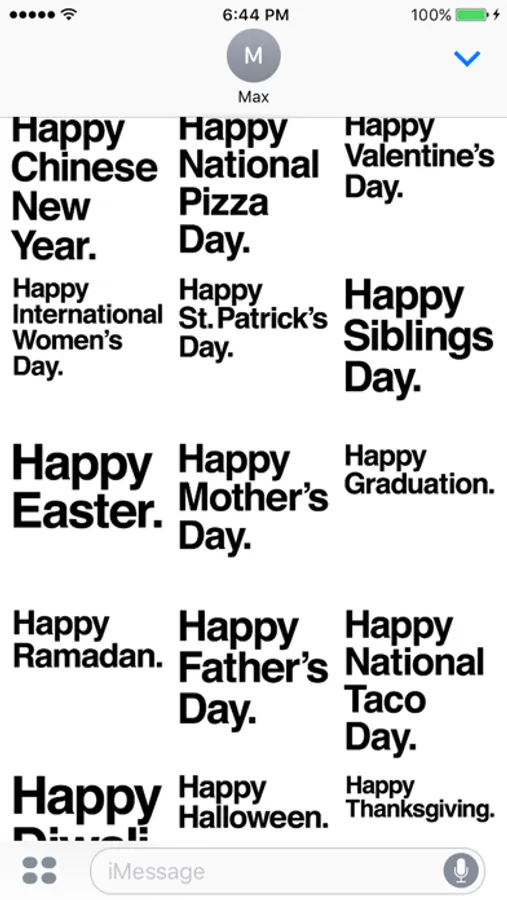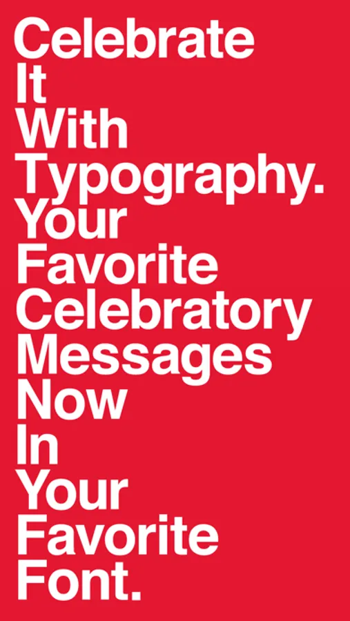 All your favorite celebratory messages like “Happy Birthday”, “Merry Christmas” and “Congrats On The New Job” now perfectly typeset in your favorite Swiss sans serif font.