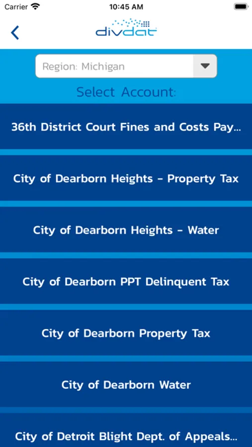 - App presents local area DivDat Payment Network billers, so consumers can add repeat billers and accounts to their payment profiles for increased convenience in account look-ups and repeat payments