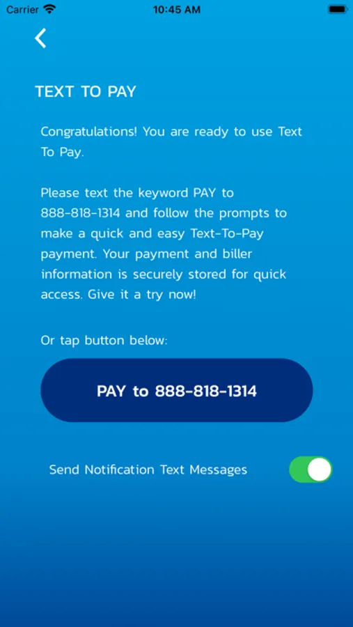- NEW FEATURE: Opt-in to Text-to-Pay and enjoy ultimate payments efficiency, on the go