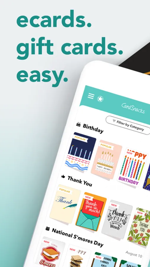 CardSnacks lets you send fun, animated ecards from your phone for all occasions and events: Birthdays, Thank You cards, Anniversaries, Invitations, I Love You, Congratulations, and much more! And you can add gift cards to go along with your card.