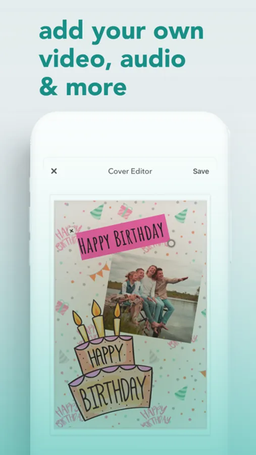 CardSnacks lets you completely customize your greeting card. You can add your own: