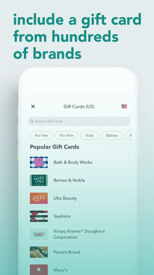 With CardSnacks, you no longer need to trudge to your local store or pharmacy to buy a gift card. You can buy gift cards from 100s of leading retailers right from the app and include it with your CardSnack. The recipient can then easily redeem the gift card right from their phone.