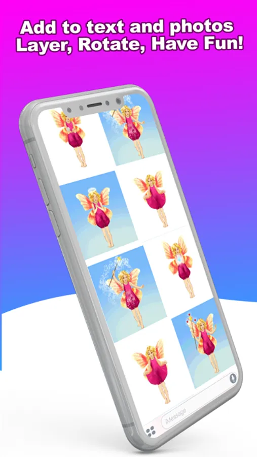 Send the Fairies in text messages, attach them to photos, attach to other messages, stack them up, resize them, rotate them, opportunities are endless!