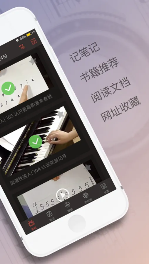 【视频讲解】三套经典的入门视频教程,一套识谱与歌唱练习教程,为你的简谱识谱打下结实基础 。支持视频收藏和标记为已阅功能。