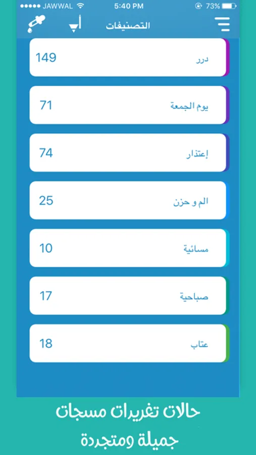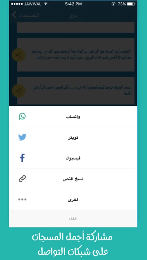 برنامج مسجات ورسائل - متجددة ومتنوعة من اجمل البرامج التي توفر مجموعة مييزة من اروع واجمل المسجات والتغريدات الجاهزة ويمتلك خصائص جميلة منها :