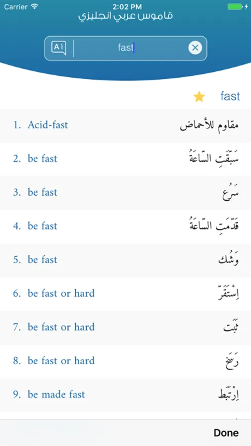 6- بأمكانك حفظ اي كلمة في المفضلة بالنقر على النجمة بجانب كلمة البحث.