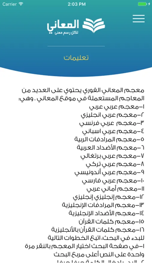 3- كلما ادخل حرفا تظهر الكلمات مع معانيها لتلك الكلمة ، وكلما ادخلت مزيدا من الاحرف تظهر كلمات اخرى جديدة