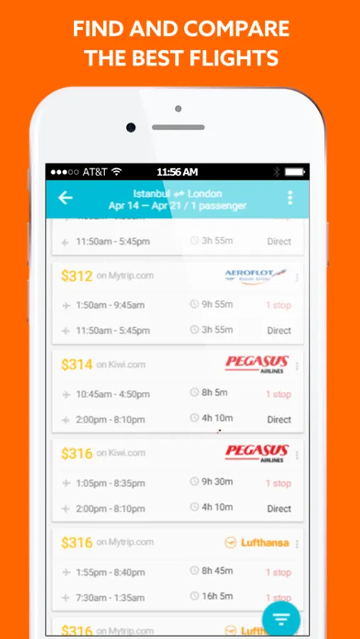 • Filter options based on stops, airlines, departure times, amenities and much more.