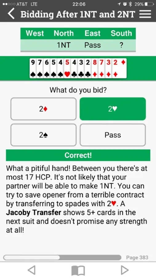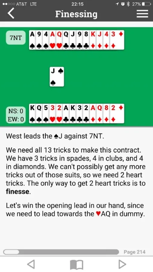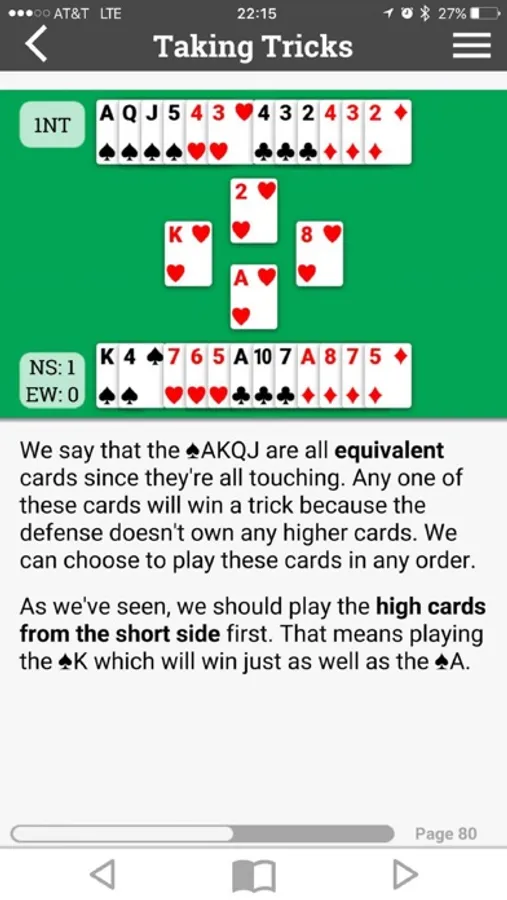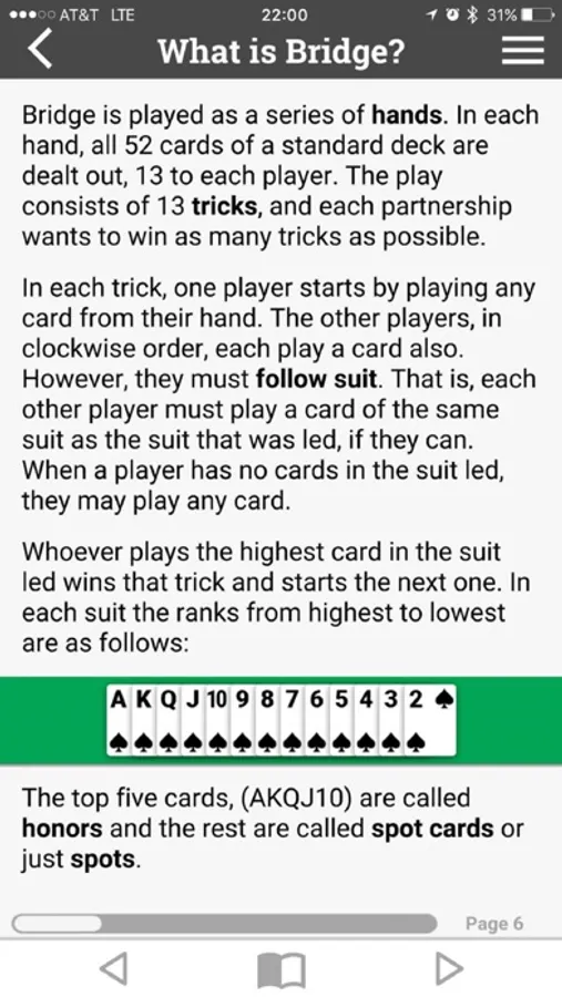 Start by learning the rules and basic cardplay strategy, then learn about what really sets Bridge apart from other trick-taking games: bidding back and forth with your partner to determine how many tricks you can take, and what the best trump suit will be.