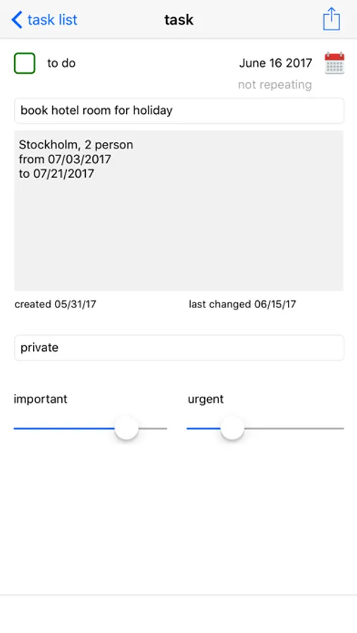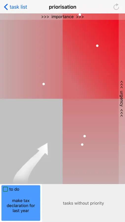 Eisenhower ToDo informs you to define how urgent and how important a task is. You define urgency and importance in a very objective way. You don't need to compare all tasks to each other in order to find the right priority - time saving and convenient.