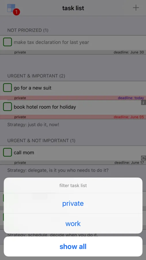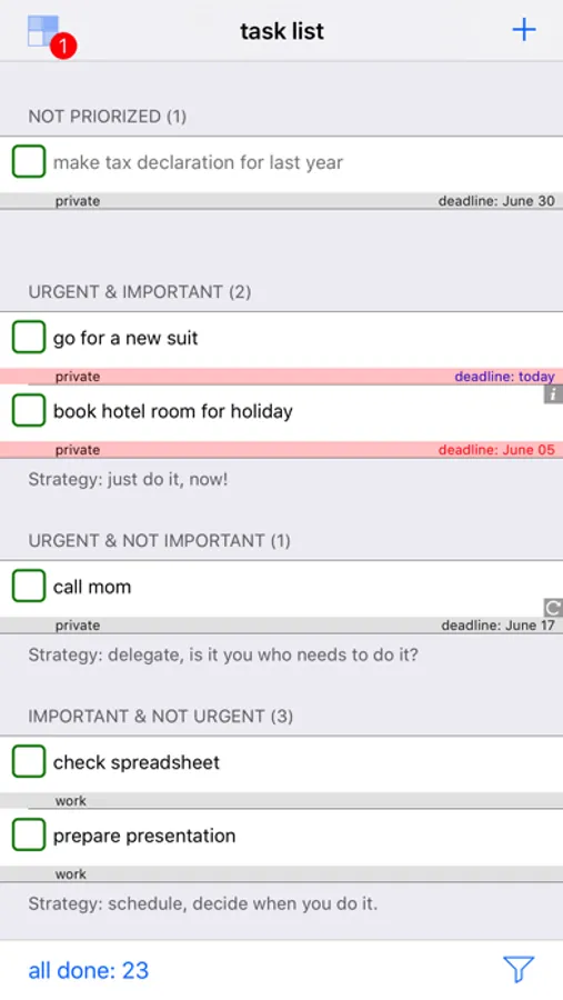 Eisenhower ToDo is designed for managing all these little tasks of your daily business. New tasks can be added with a few klicks and can be defined later.