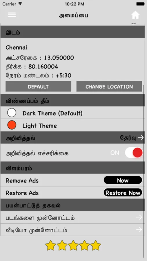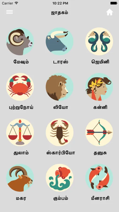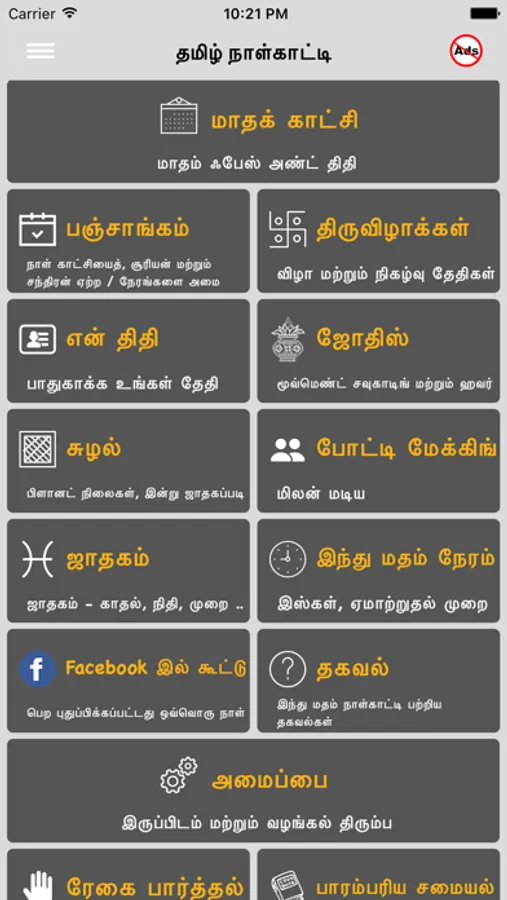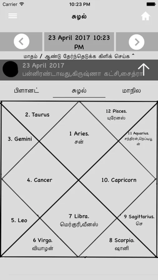 1) Daily view, Month view, Rasipalan for all 365 days & Daily Horoscope chart