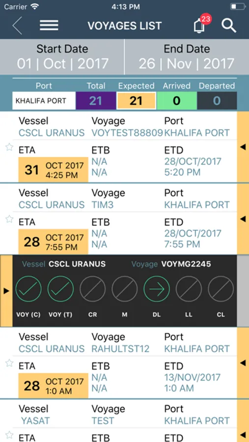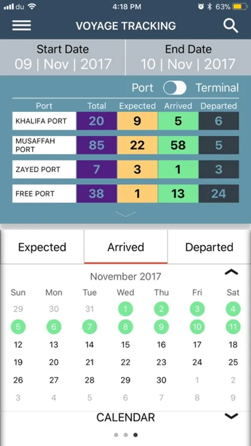 • View calendar events and vessel schedule (i.e., Arrived, departed and expected vessels)