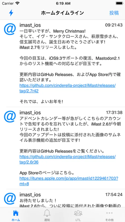 公式アカウント: @imast_ios@mstdn.rinsuki.net https://mstdn.rinsuki.net/@imast_ios