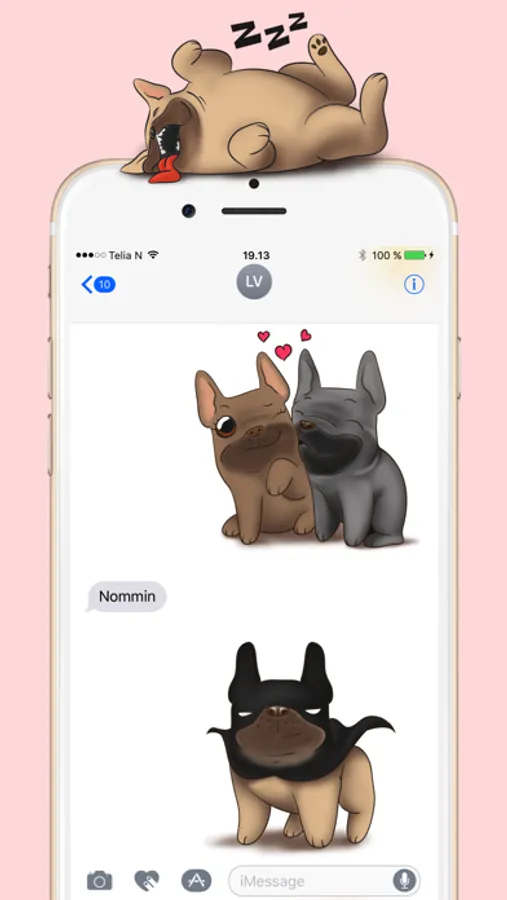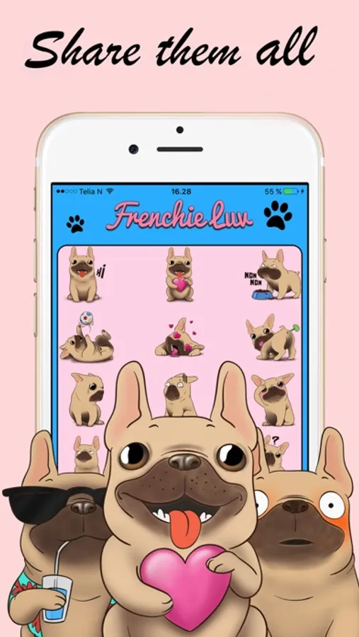 Share cute frenchies via iMessage, messanger, WhatsApp or facebook chat.