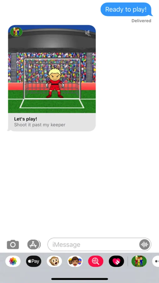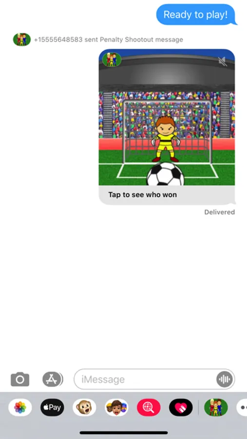 Penalty Shootout for iMessage is a fun and exciting two player turn based game for iMessage only. Challenge a friend to shoot a goal past your goal keeper and when challenged you try and shoot a goal past your friends goal keeper! Earn tokens when you win and spend it when you challenge a friend. Hours of entertainment if you are a soccer fan or not!